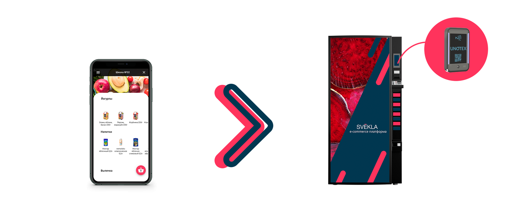 Автоматизированный пункт выдачи реализуется на базе обычного торгового автомата. Вместо платежных систем устанавливает терминал ID&TAKE и подключается к e-commerce платформе SVЁKLA